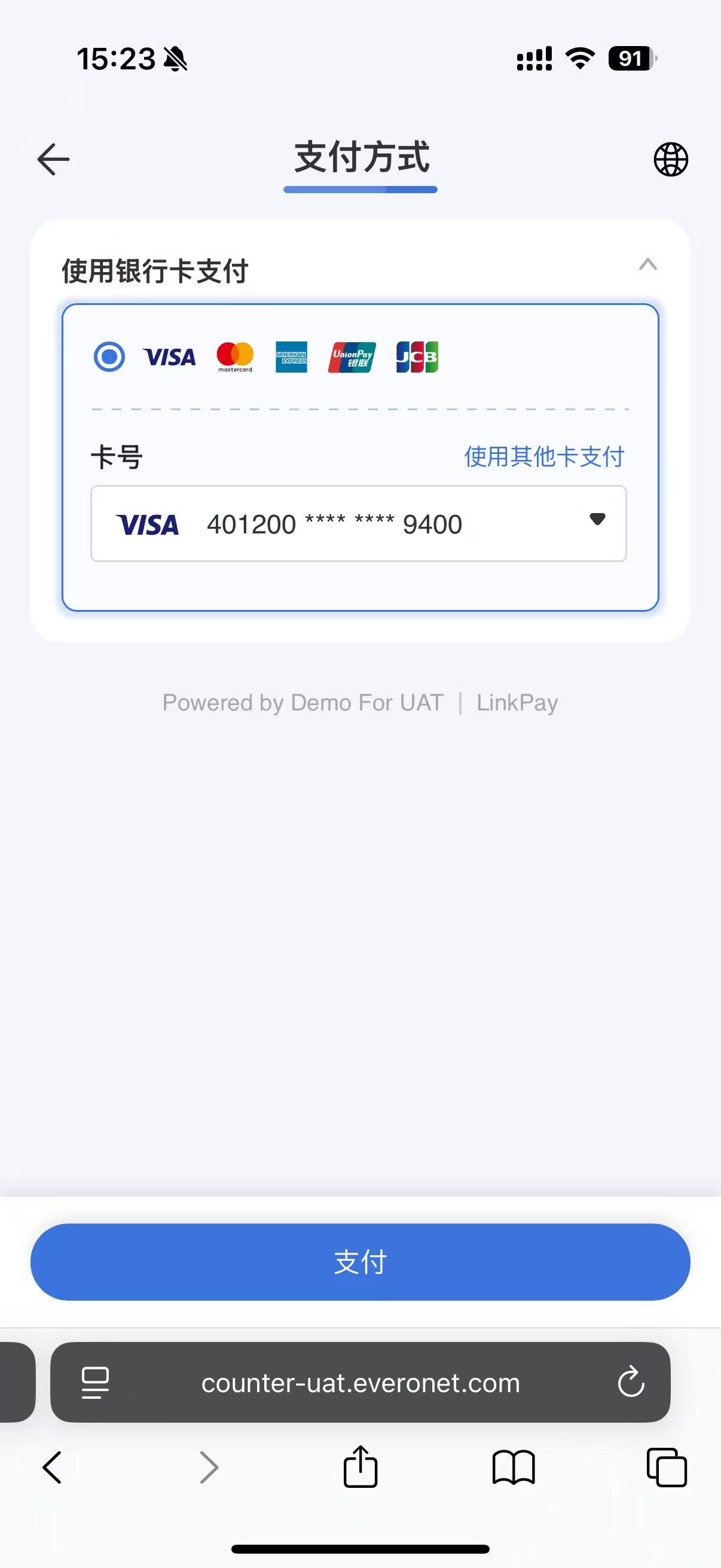 - If the user chooses “Save card details for next time” in the previous payment, then when the next payment, user will see the stored card(s) in LinkPay. They can use the card to make payments directly.